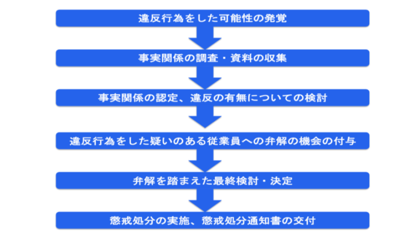 以上のことを踏まえると、懲戒処分を実行する際は、以下の流れで行うのが安全と考えます。